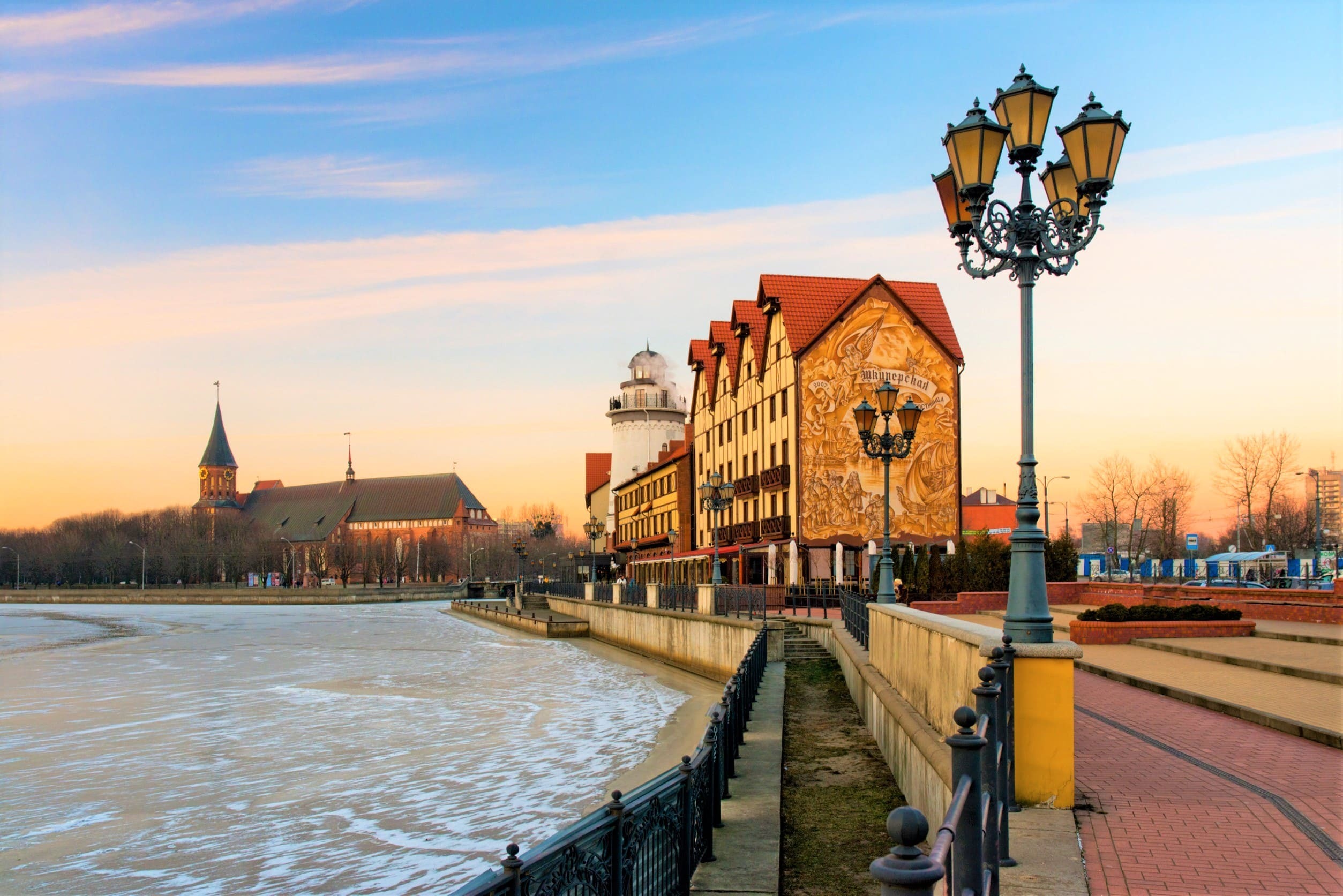 Экскурсия по острову, во время которой, вы сможете разгадать «Тайну семи мостов». А ещё вы насладитесь сказочной новогодней атмосферой Рождественской ярмарки на острове и лазерным шоу на Кафедральном соборе. Главным сюрпризом ярмарки, конечно, станет горячий напиток, который мог родиться только в этих местах. Глинтвейн "KantWein" напоминает о том, что традициям острова уже не одна сотня лет. И после этого пройдёте по Медовому мосту, сохранившемуся после войны, и окажетесь в «Рыбной деревне». Вечернее освещение в Рыбной деревне представлено архитектурной подсветкой зданий в стилях фахверк, а также вечерней иллюминацией, создающей сказочную атмосферу старого европейского города на фоне реки Преголя.